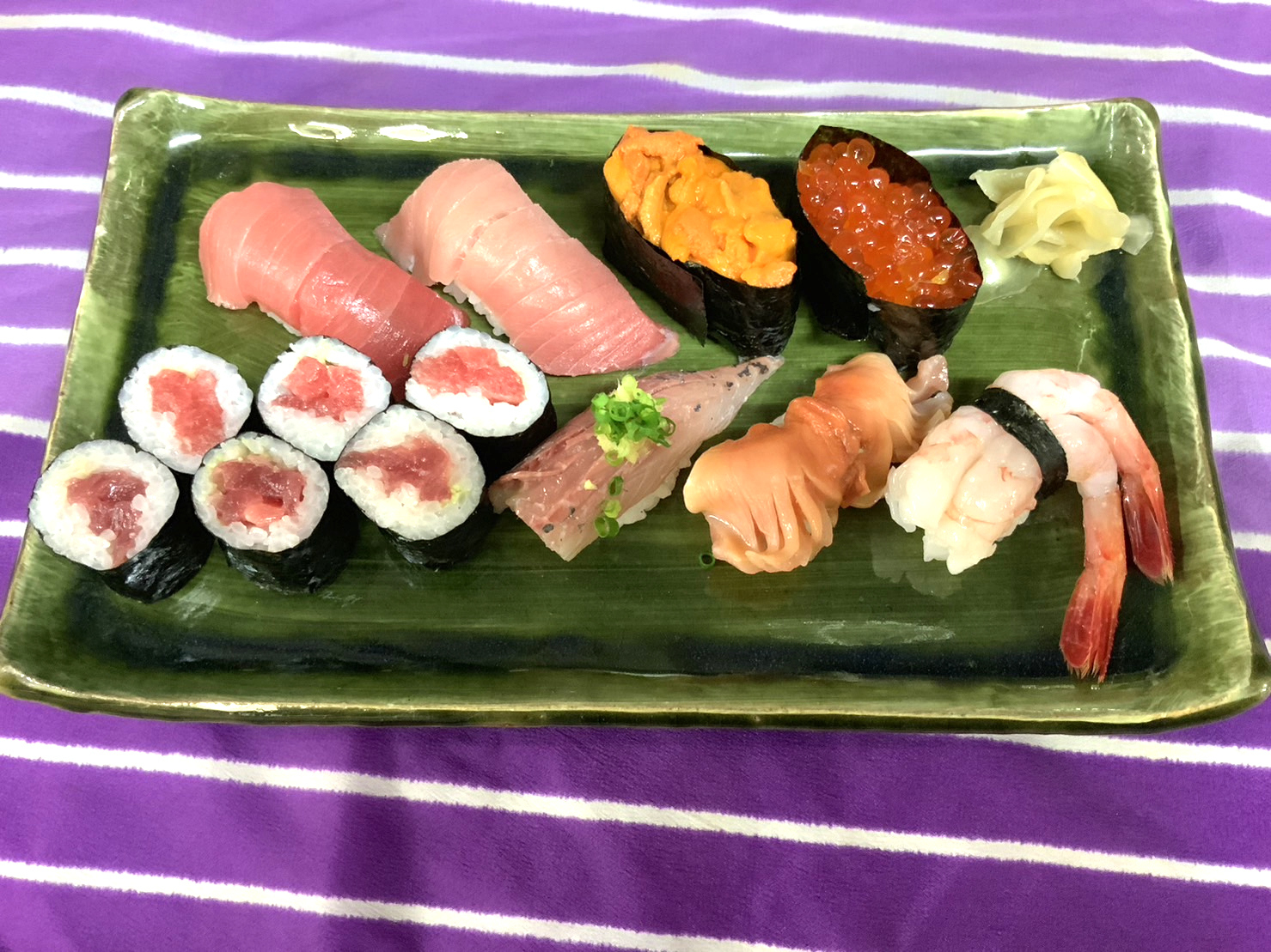 にぎり14貫・上巻物1本・突出しサラダ・ミニ茶碗蒸・デザート