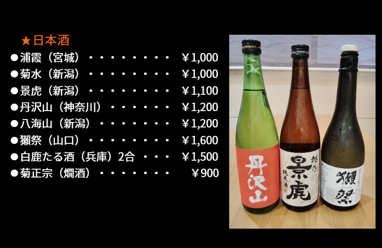 まぐろ近海の魚を始めとした季節の魚介類を吟味し、ご提供させて頂きます。選ばれた味をごゆっくりとご堪能下さい