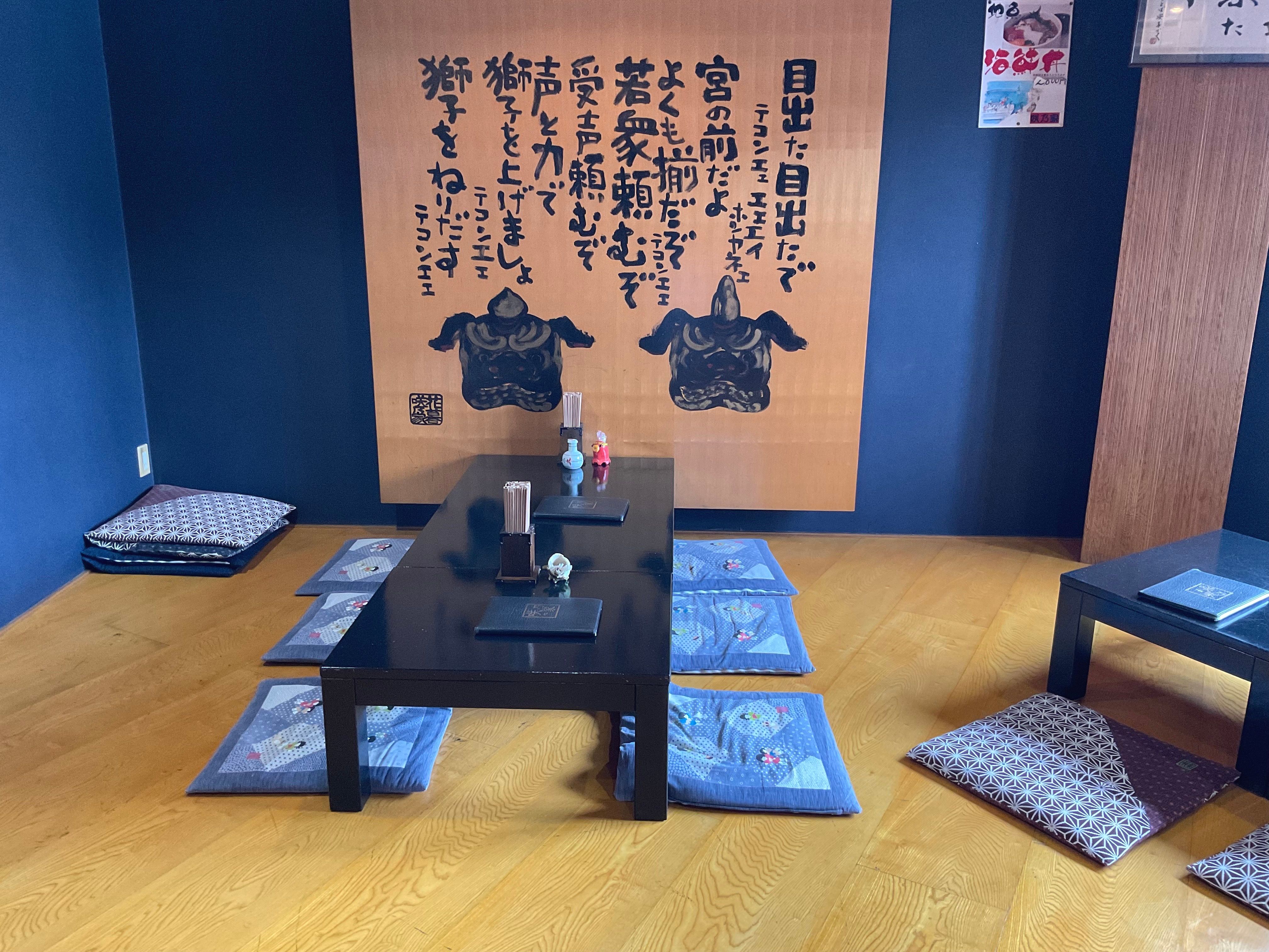 咲乃家の店内は和風の装飾や内装で統一されており、落ち着いた雰囲気が漂っています。くつろぎながら美味しい食事を楽しむことができます。各種会合でもご利用ください。